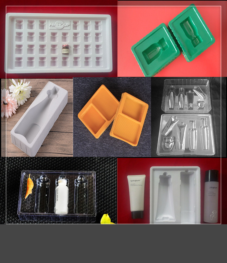 托盤(pán):也叫塑料內(nèi)托,采用吸塑工藝將塑料硬片制成特定凹槽的塑料,將產(chǎn)品置于凹槽內(nèi),起到保護(hù)和美化產(chǎn)品的作用。