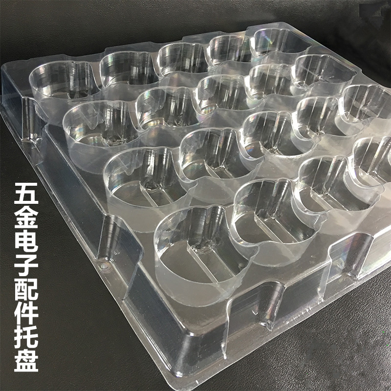 托盤:也叫塑料內托,采用吸塑工藝將塑料硬片制成特定凹槽的塑料,將產品置于凹槽內,起到保護和美化產品的作用。